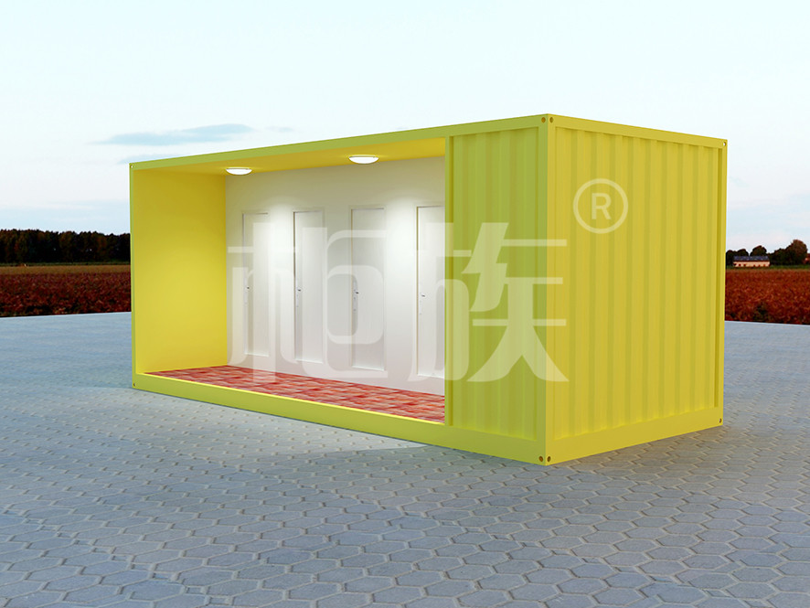 The bright yellow toilet with six seats can be used by connecting water and electricity on site. The appearance is fresh and generous, the facilities are complete and the function is practical.